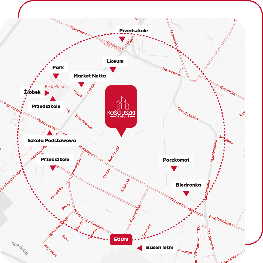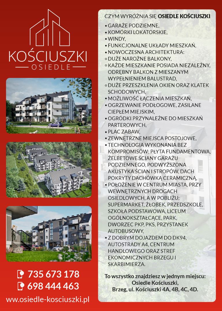 Osiedle Kościuszki to wyjątkowe, nowo powstające osiedle PREMIUM, które wyróżnia się nowoczesnym designem i funkcjonalnymi rozwiązaniami.